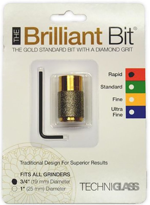 Brilliant Bits are made of a solid brass body using a proprietary Diamond Bonded Technique that promotes extra long life and resists corrosion. Bonded Diamonds easily last twice as long as electroplated diamond steel grinder bits. These are a must-have in any stained glass studio!