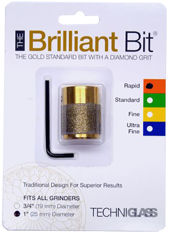 Brilliant Bits are made of a solid brass body using a proprietary Diamond Bonded Technique that promotes extra long life and resists corrosion. Bonded Diamonds easily last twice as long as electroplated diamond steel grinder bits. These are a must-have in any stained glass studio!