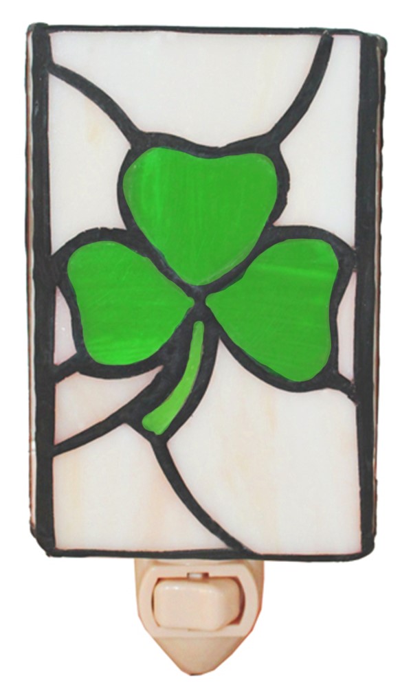 Hand made in the true tiffany method - foiled and soldered. The panel contains a stunning green shamrock design. A great option to light up any room in the house at night.