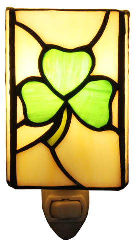 Hand made in the true tiffany method - foiled and soldered. The panel contains a stunning green shamrock design. A great option to light up any room in the house at night.